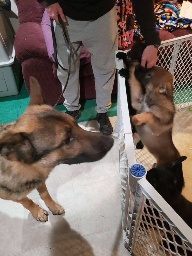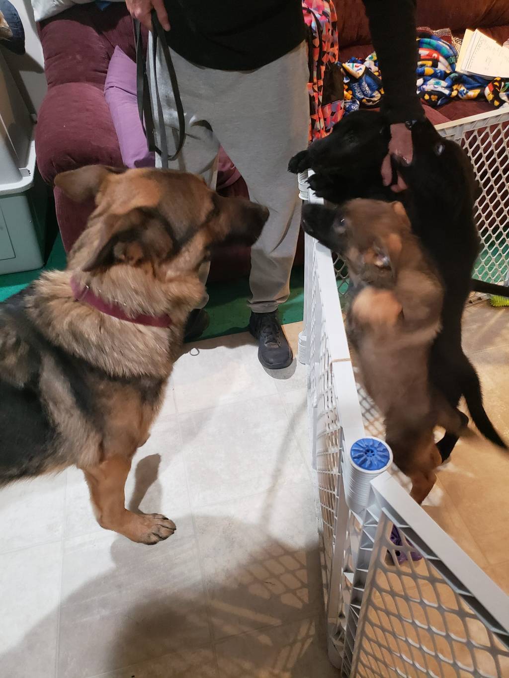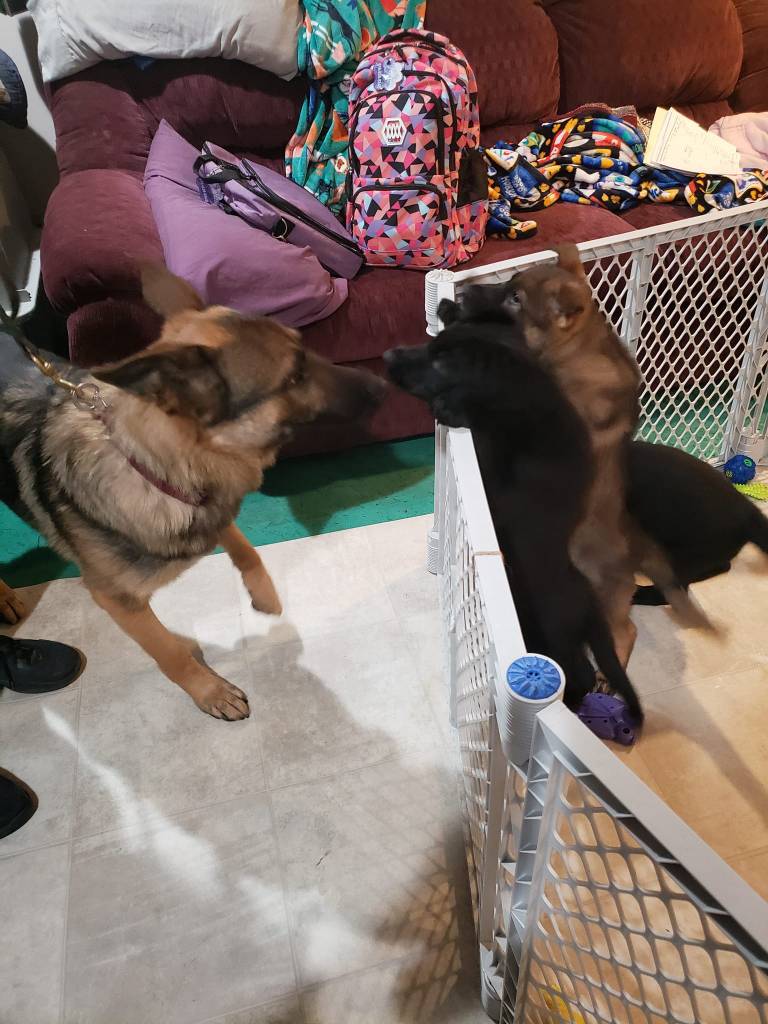 New flooring and introductions. Gusto and Nico finally get in their room. Our Black male and female are still available.